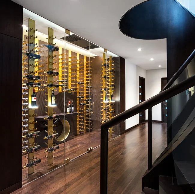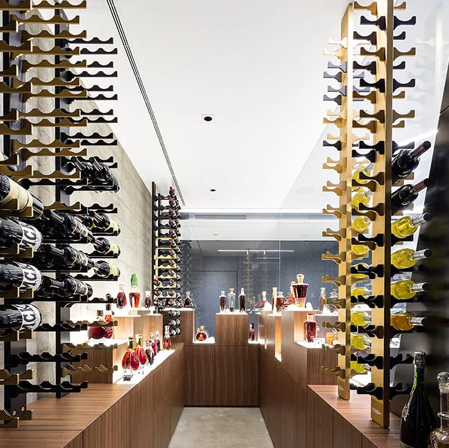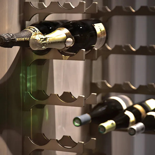 The Mono Series offers a compact, minimalist approach to wine storage using individual wall-mounted aluminum plates. Designed for flexible configurations, Mono plates can be arranged in custom layouts to create striking, label-forward displays with minimal visual footprint.