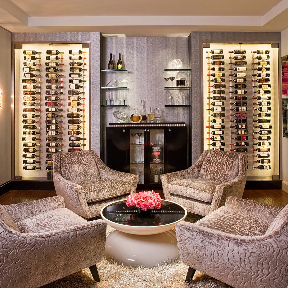 Crafted from high-quality steel and supported by premium hardware, VintageView racks combine clean architectural lines with exceptional strength. Wall-mounted configurations, modular components, and a range of refined finishes allow for flexible layouts that suit virtually any space while showcasing each bottle as part of the overall design.